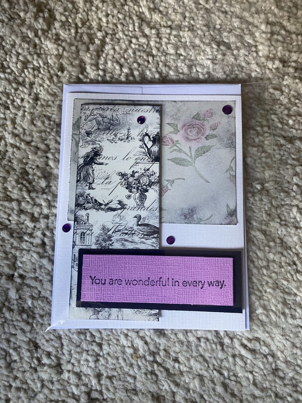 A beautiful card with a beautiful message, this  hand-made card uses a combination of mixed media, gem stones, ribbon, and a stamped saying. Printed on quality card stock. Watercolour additions and layers adds to the beauty of this piece. A special way to show someone you care with a piece that was made with care and love. Blank inside so you can customize your own sentiment. Includes an envelope.