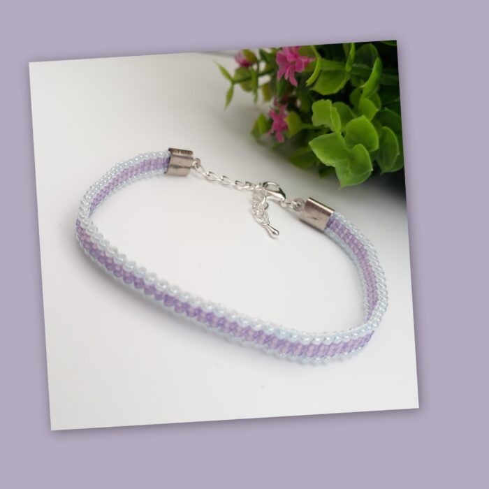 Thin soft pastel lilac purple seed bead handwoven bracelet