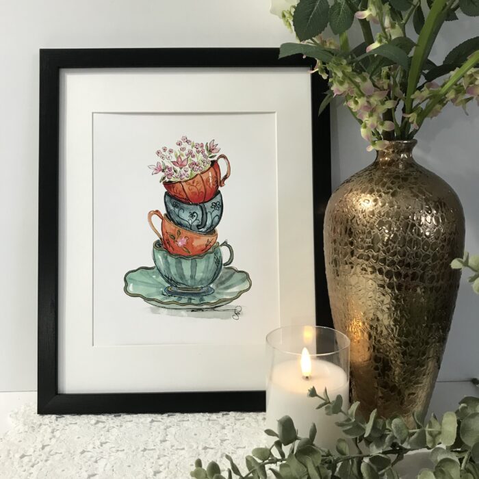 Stacked Teacups (Black Frame)