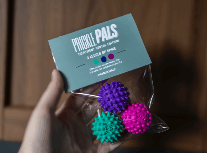 Together we invented Prickle Pals — quirky little sensory tools with all kinds of prickles to help soothe, focus, and fidget.