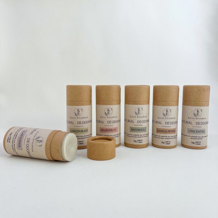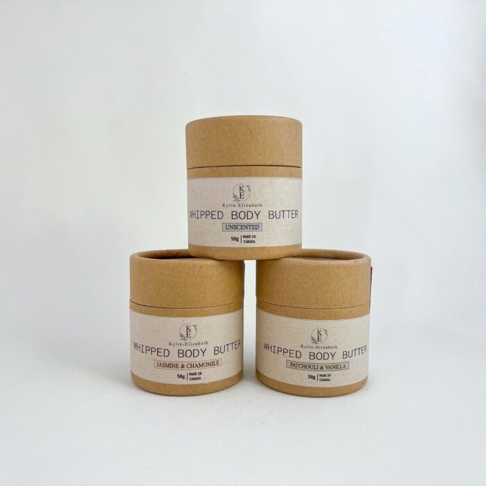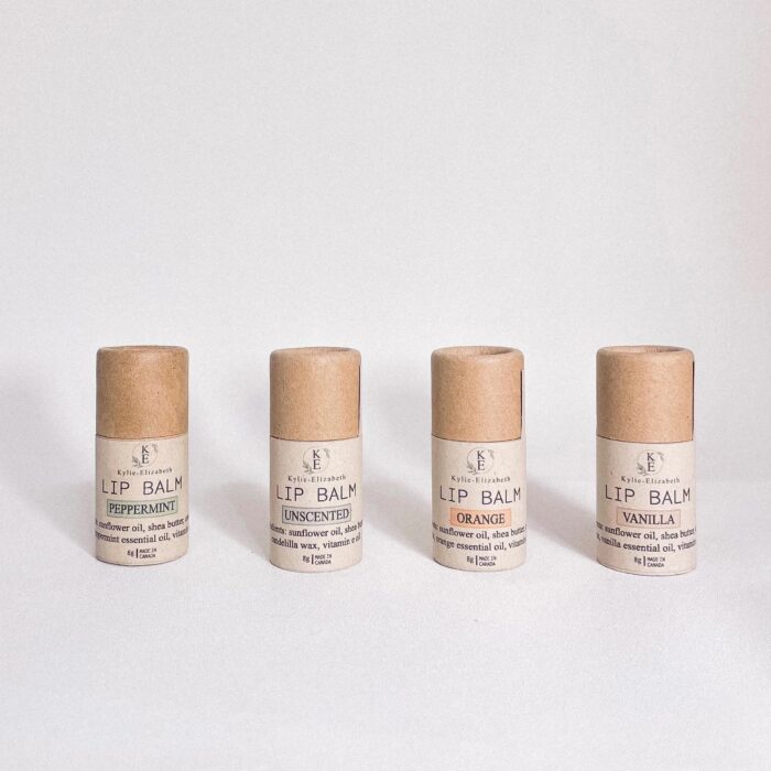 Most Kylie-Elizabeth products are packaged in 100% compostable kraft cardboard containers or recyclable glass or tin. We strive to produce and package our products with as little waste as possible, even selling “Perfectly Imperfect” products with stained labels instead of throwing them out. Reusing & recycling everything we can!