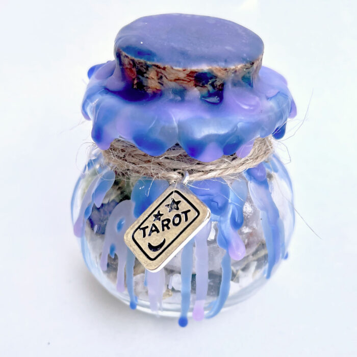 I’m a Celestial Witch, Astrologer, Tarot Reader and Artist proudly accepting my role in society as a geriatric millennial, witchy aunt and Elder Emo. I have a background as a professional Graphic Designer, and I still enjoy playing with my love of typography and colour to design fun & cheeky stickers and prints. Anime has been a huge part of my life, chibi-fying pop culture icons, friends and, well, anything my mind decides to hyper-fixate on. Stickers and spell jars are what I’m most excited about making currently. Adding a bit of magic wherever I can!