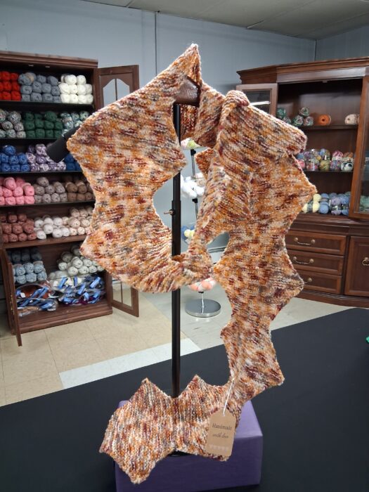 I’ve been knitting for 63 years, usually working on items for others. Very rarely do I knit for myself unless it’s a pair of mittens. I love trying new techniques, and designs, however, I find myself being pulled back to tried and true items such as a warm sweater, blankets, mitts and socks etc. Knitting or crocheting travel wherever I go – vacations, work, medical appointments you name it my knitting/crochet has probably been there. I love doing custom orders for people, especially items for baby shower gifts.I get inspired by Icelandic, Norwegian and Finnish knits and am in awe of the colour work from Shetland and Fairisle. I’m not opposed to using a good synthetic but love the feel of pure rustic wool. When doing orders I have a number of questions for my customers so that their item is to their liking and that it gives me joy while creating the item. I believe that everyone should have at least one item in their possession that is a hand knit or crocheted item – to me hand knits say I love you. As for the yarn, I’m lucky to be able to find goodies from around the world at my finger tips at my wool shop.