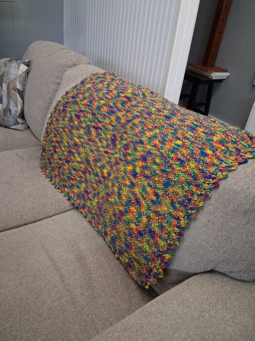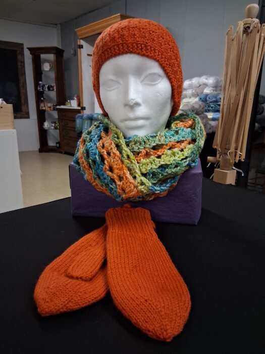 Hand knit and crocheted blankets, mitts, clothing, and more, made with LUV in Rodney.
